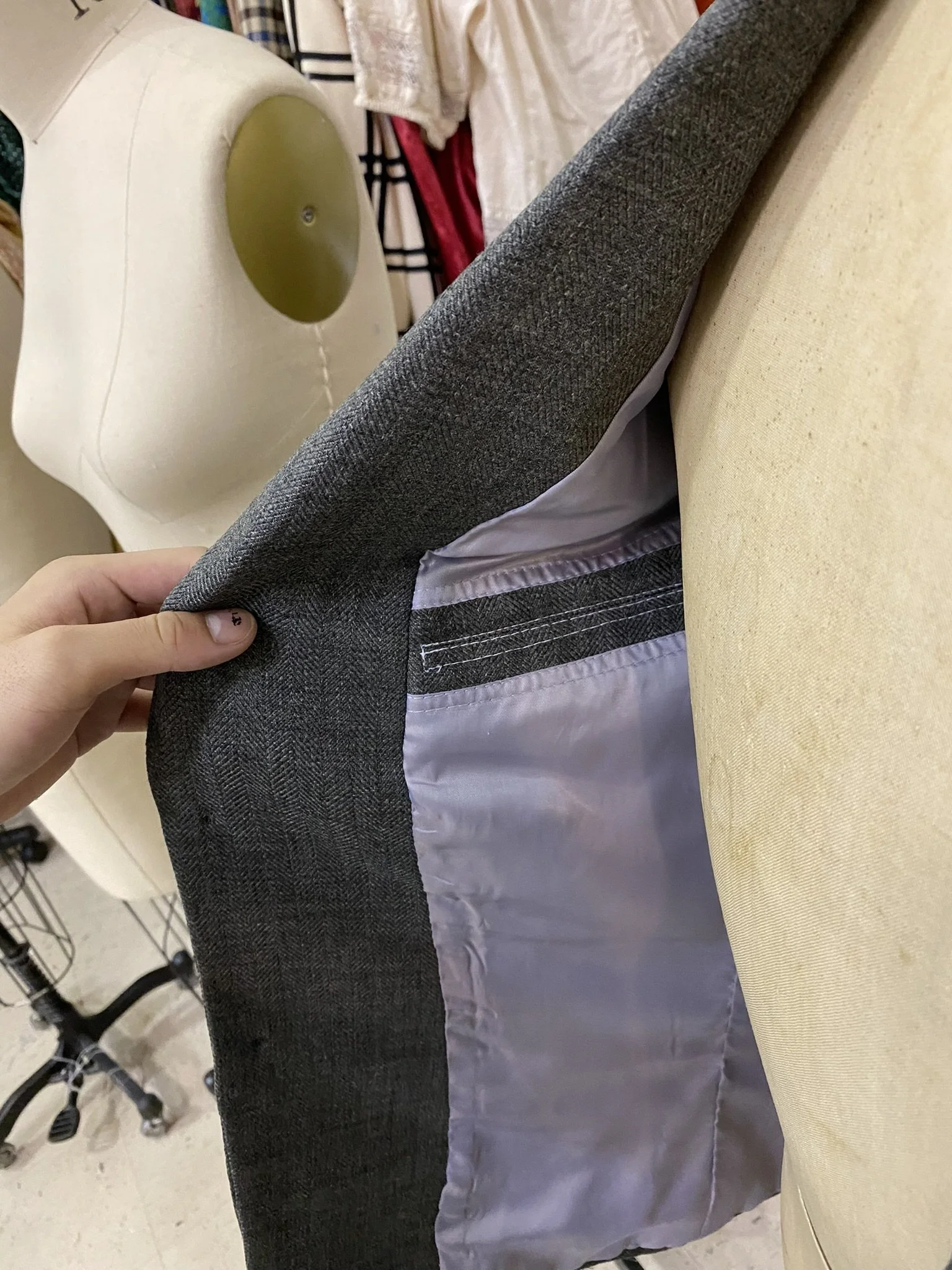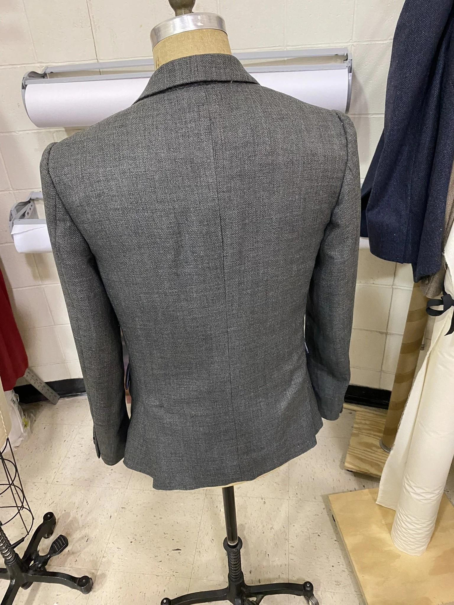 This garment was developed during my tailoring course within the FSU School of Theatre’s MFA Costume Design program. Through this course, I gained hands-on experience in constructing a bespoke suit using a commercial pattern, refining the fit through multiple fittings after completing the torso, sleeves, and collar. I also learned and practiced essential hand-stitching techniques, including pad stitching, tailor basting, pick stitching, and double cross stitching. This experience provided me with a comprehensive understanding of the intricate craftsmanship involved in bespoke tailoring, from precise construction to the finer details of pocket-making.