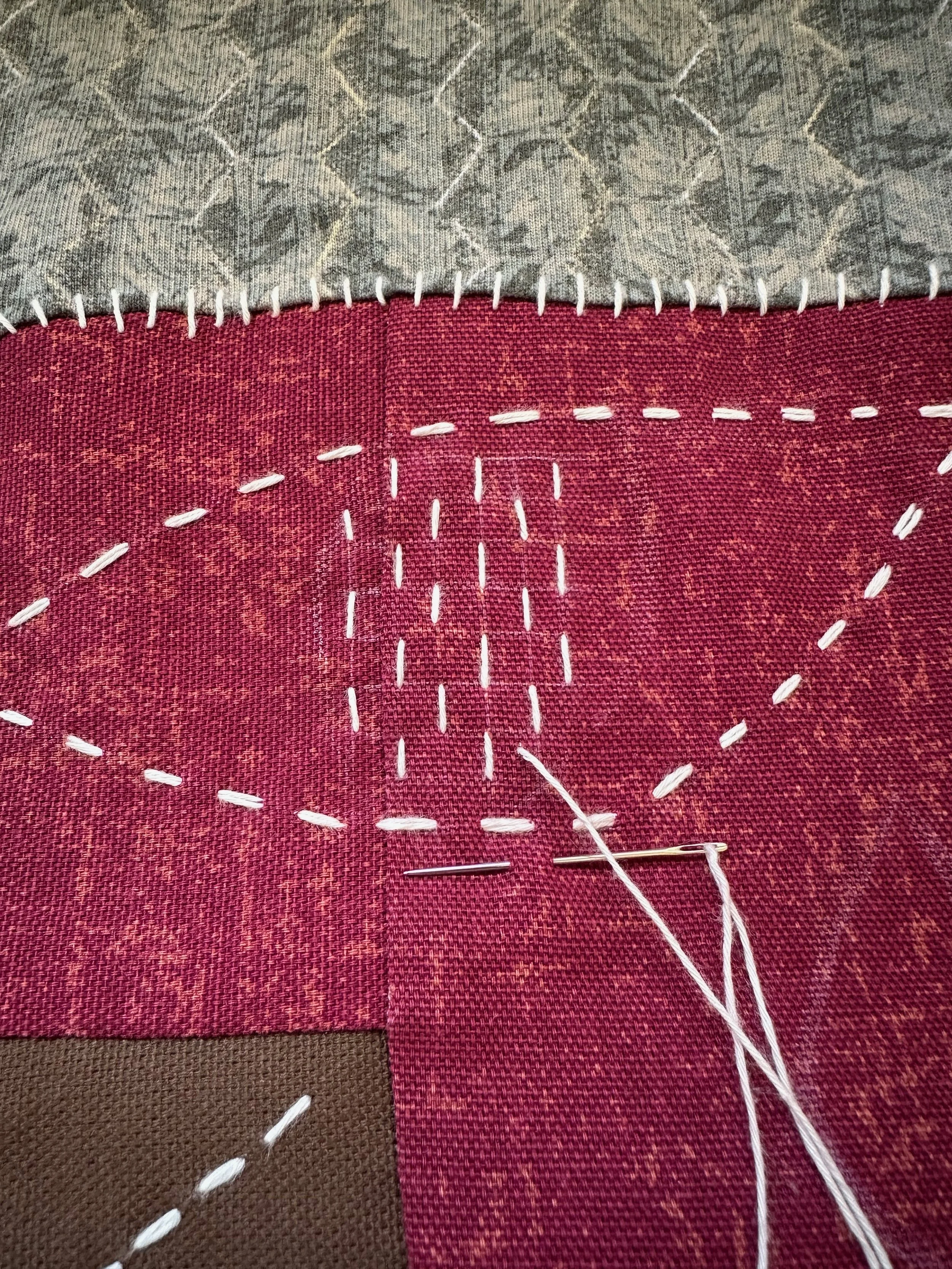 This garment explores hand-stitching as a graphic medium, using Sashiko stitching to reference the visual language of a T-shirt print. A fundamental running stitch is recontextualized in a playful, humorous way, shifting it from utility to surface design.